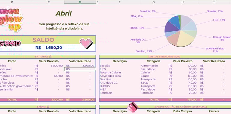PLANILHA GLOW UP